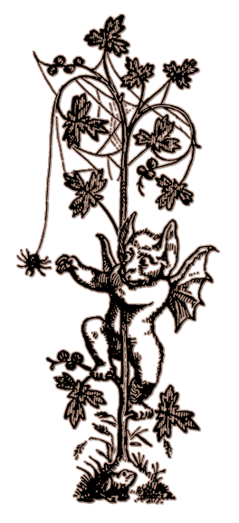 the Dark Lord with a ruby jewel on his forehead and a flaming torch that glows from between his horns. Leather, graveyard dirt, torch smoke and stark white birch branches remind us that he is the very spirit of winter and death